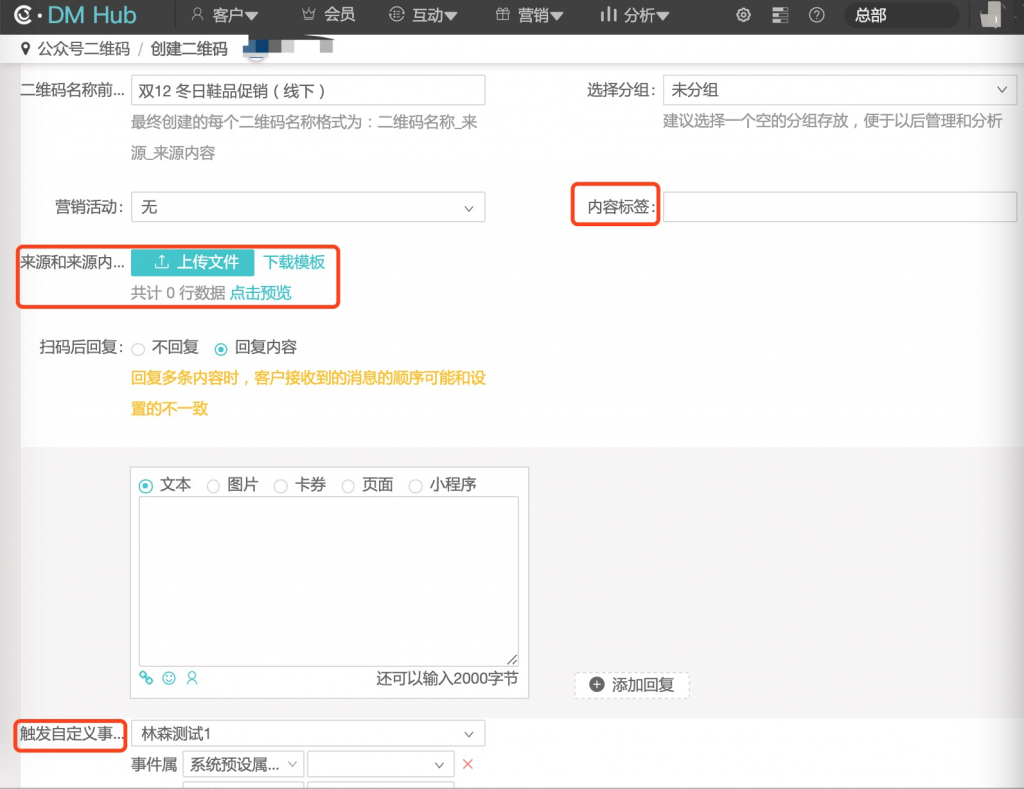 比如,不同于微信后台二维码,DM Hub提供的带参二维码相当于自动安装了监测代码,可以识别不同的客户来来源,丰富用户画像。