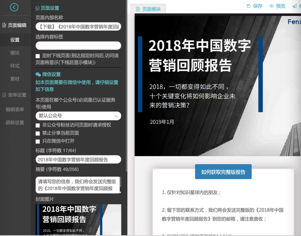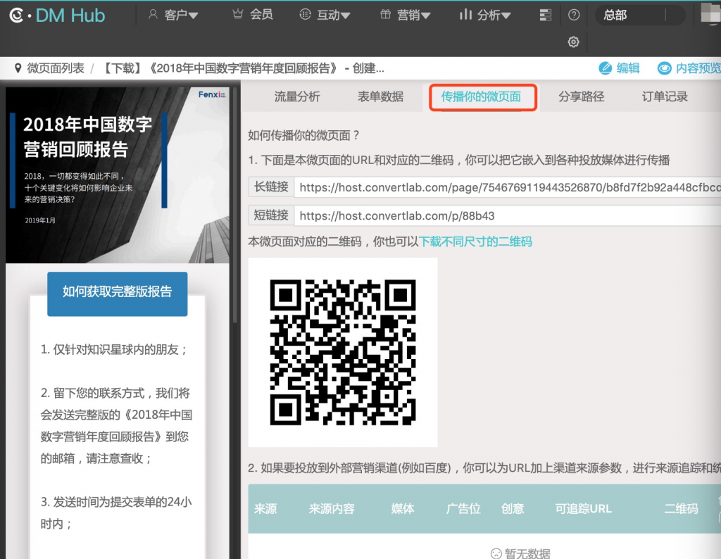 首先在DM Hub的微页面制造“诱饵”,比如我们选取的高质量的报告集合,或者纷析原创的干货报告,以此诱惑大家进行分享。