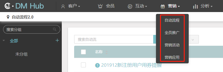 首先,我们通过DM Hub在客户模块中捕获的消费者数据,筛选出领取优惠券的会员,建立群组。