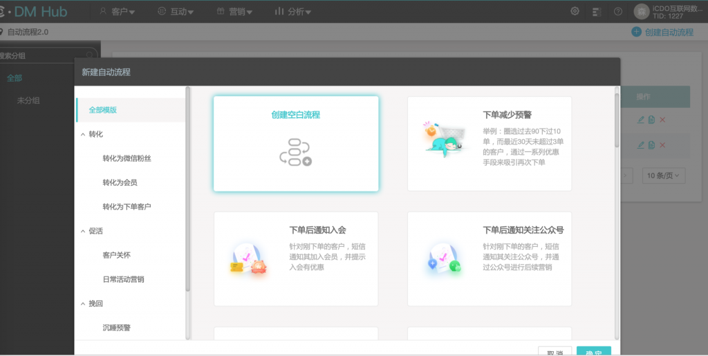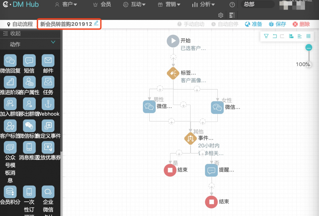DM Hub的自动流程(营销画布)子模块包括三个重要的可自定义的功能。