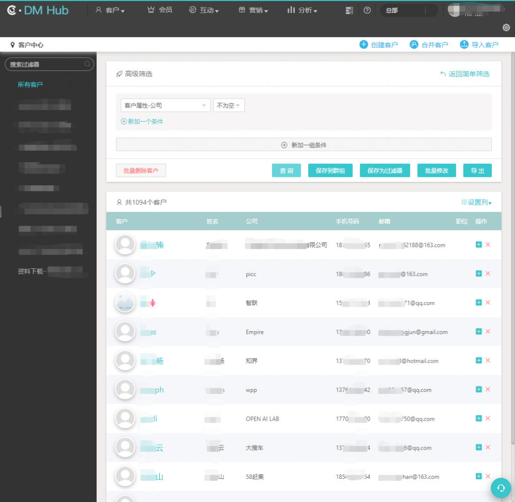 你可以将客户模块理解为客户的数据库,或者客户数据的管理和操作的系统。很显然,因为营销云是用在营销上的,而营销的对象又是客户,因此这个模块毫无疑问是营销云中最核心的模块。