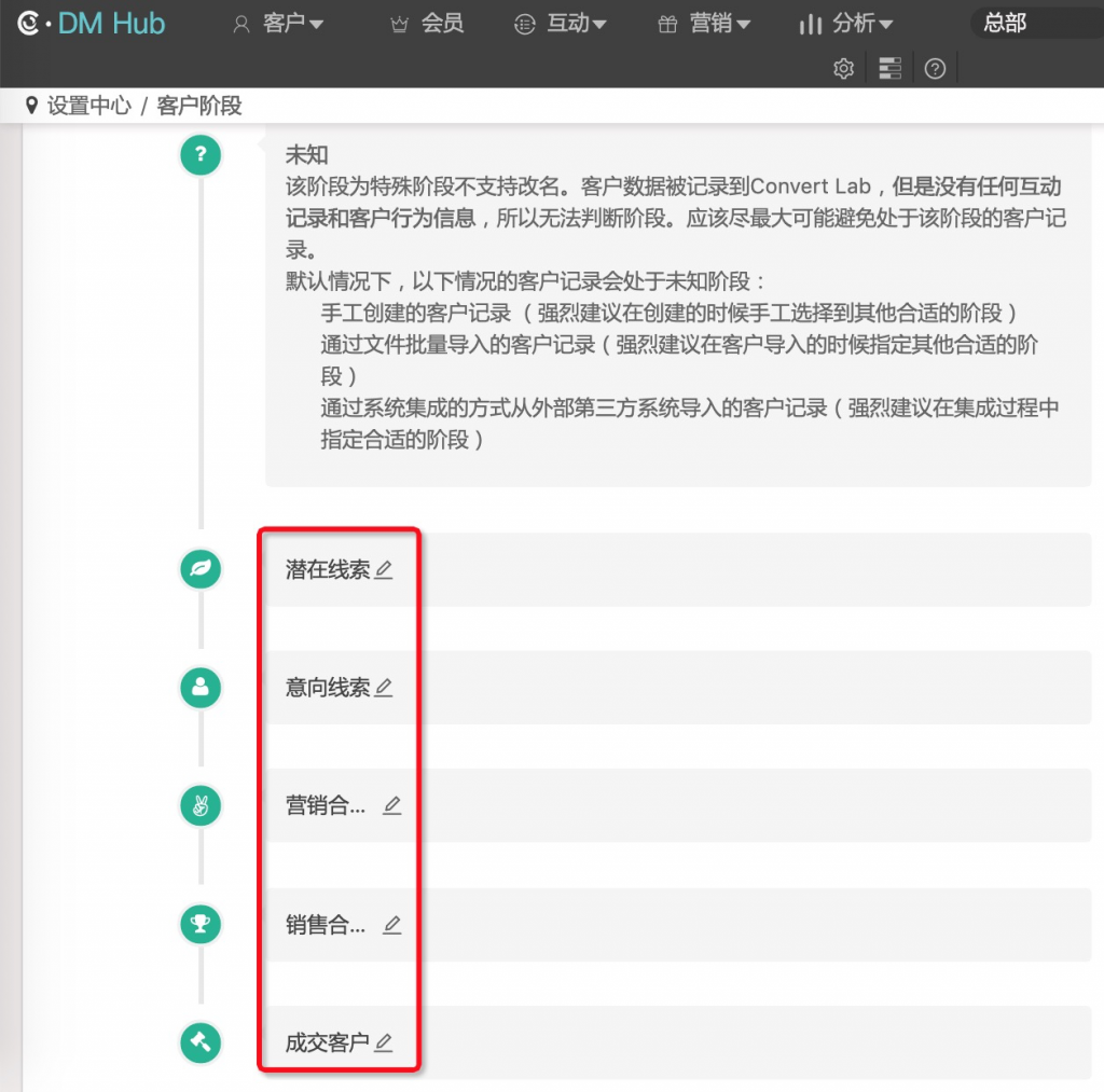 第一步,在DM Hub清晰定义客户从潜在线索到成交客户的全旅程阶段。