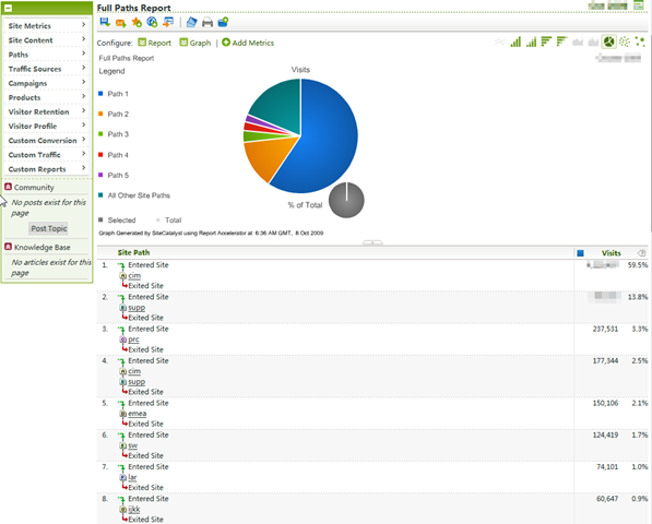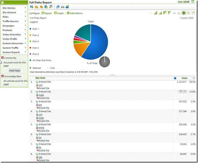 图:SiteCatalyst的Full Paths Report,用于分析访问流量的各种路径