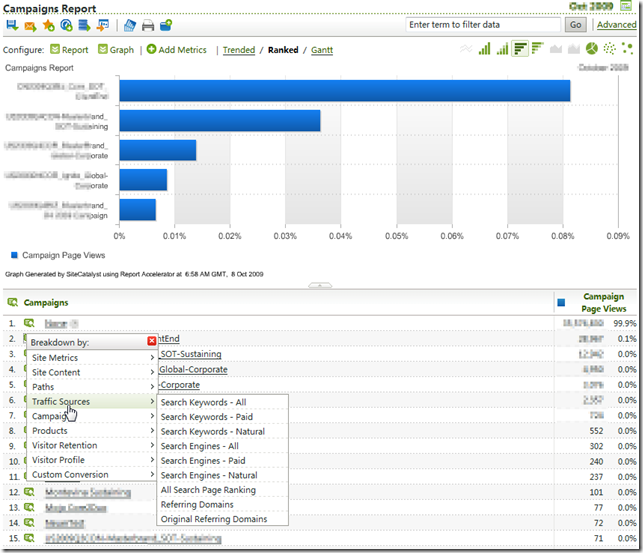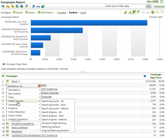 根据具体营销战役(Campaign)的需要,SiteCatalyst提供基于各次campaign的报告,如下图。