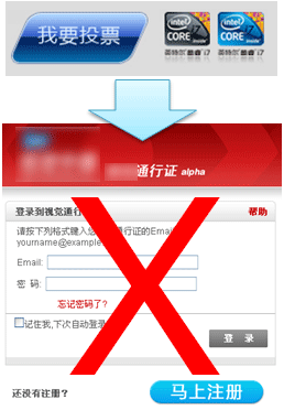 因此,我们的建议很简单,让网友们不经注册就能直接投票!(我们还是得通过技术手段防止绝大部分的作弊)