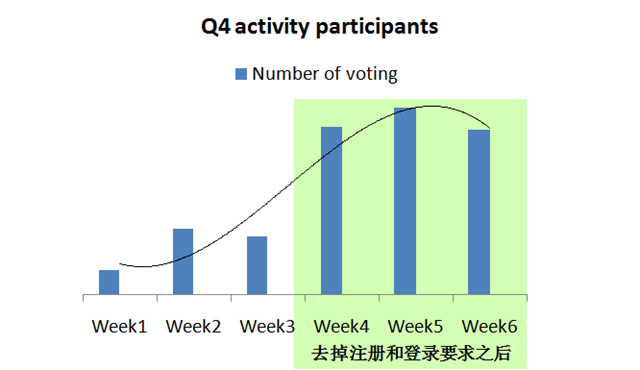 柱子图和趋势都是真实案例的,只是我去掉了实际的数量,投票数量至少平均上升了150%,真正的投票能量被释放出来,这说明这个注册登录要求是多么的不合理。