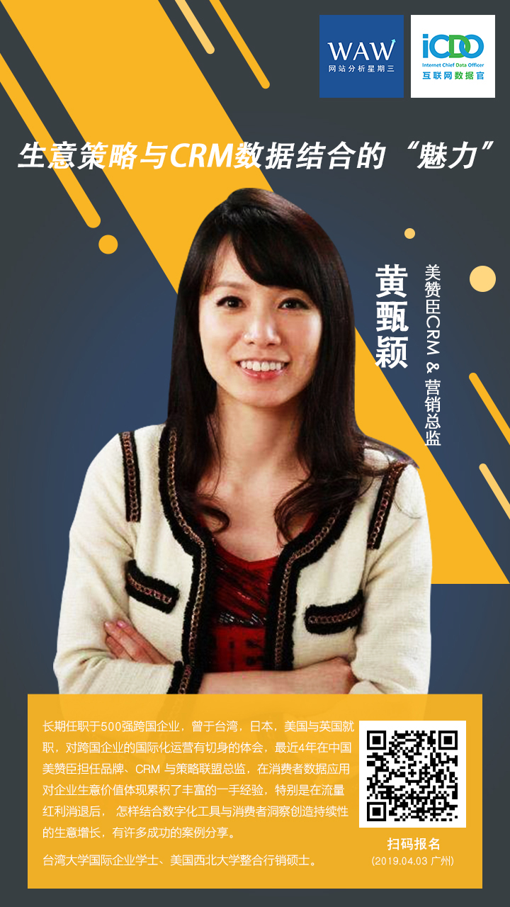 我们的好朋友美赞臣CRM & 营销总监黄甄颖会结合企业丰富的实战经验,用案例的方式,帮我们了解品牌是如何理解和运用数据。演讲内容包括: