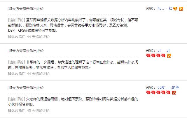 王楠(东易日盛互联网市场营销总经理):认识宋老师是在WAW沙龙上,当时就觉得宋老师讲的东西很不同,理念和思路都很有趣也有深度。更多朋友认识宋老师是因为他的博客网站分析在中国,大牛的博客。个人认为如果没有太多时间阅读他博客上的所有文章,那么他的这个培训一定不要错过。培训中还覆盖了很多博客还没有写到的新的互联网情况,比如移动的分析,微信的分析,程序化营销等等。宋老师风趣幽默,虽然课程是两个整天,知识点很多,但总体听下来感觉还是比较轻松的。