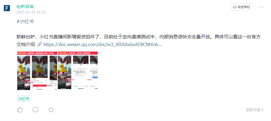 其实,不用太担心。小红书官方虽然严厉打击商家私下的引流行为,但并没有完全封死这一条路。去年推出的私信获客工具,以及最近在测试中的直播留资组件,都可以满足商家的留资需求。