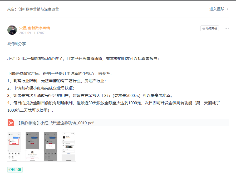 具体的开通流程之前也已经分享在我们的知识星球中,最新的变化是开通门槛下降。现在不需要向直客报白申请,只要近30天聚光或聚光lite的私信开口消耗金额大于0元,消耗达标后次日自动开通。