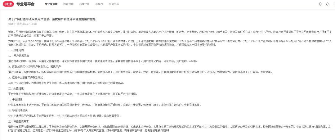 小红书上个月新出一个专项整治计划,很多朋友担心是否在未来很长的一段时间内都很难再引流至私域,只能做小红书站内的闭环收割。