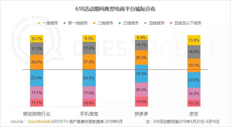 天猫618期间,聚划算交易额同比增长幅度高达86%,为品牌贡献3亿新客,其中,下沉市场增长尤为迅猛,三至五线城市购买用户和购买金额同比增长双双超过100%,四五六线消费者在整个淘系618占比上升至49%,占据半壁江山。
