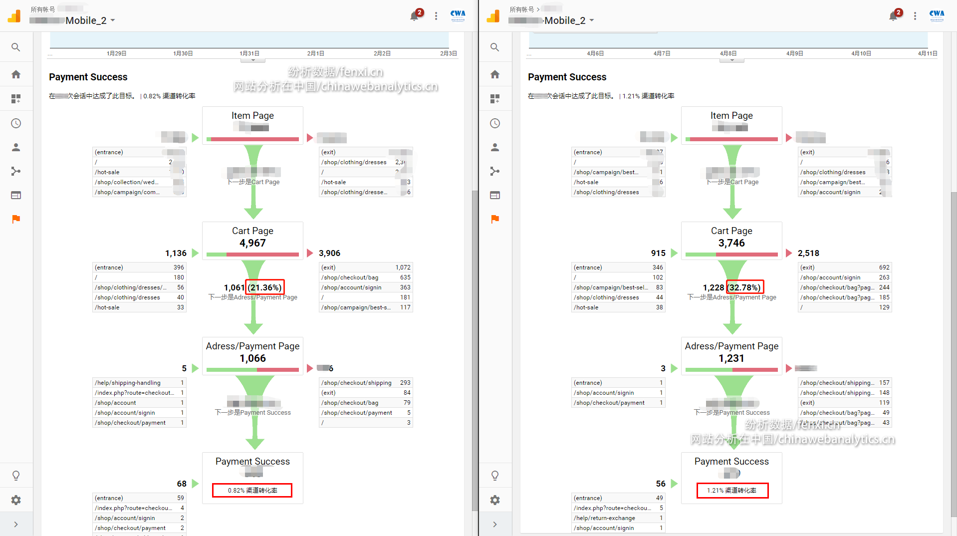 你可以看到在优化前后,购物车的流失率从接近80%降低到67%,即购物车转化率实际提升了50%左右,受惠于这一变化,最终转化率也提升了50%。
