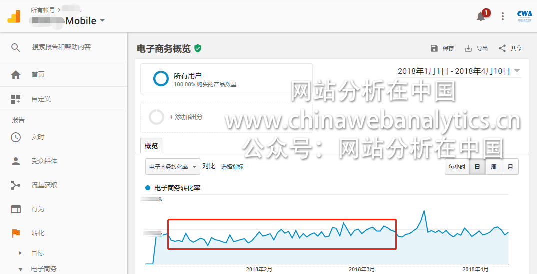 首先展示Mobile端的情况,是因为他们的流量Mobile占绝大多数。相信大部分跨境电商的朋友也类似。如果看全部流量(mobile + PC)的转化率,也明显提升了。