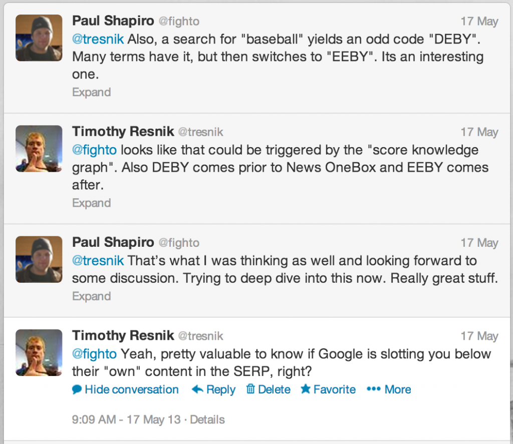 Timothy Resnik:看起来应该是由得分知识图引起的。同样DEBY在News OneBox之前而EEBY则在其后。