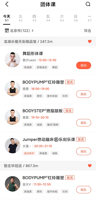 除了健身器材,会员还可以享受门店提供的教练操课,名额需要抢。器械+操课,已经超出200多块钱的预期。