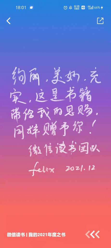 • 微信读书团队赠语:同样抓住了用户“获取认同”这一心理动机,当用户对其中的内容感到认同时,便可能将其分享到社交平台,一方面表达自己,另一方面希望获得共鸣。