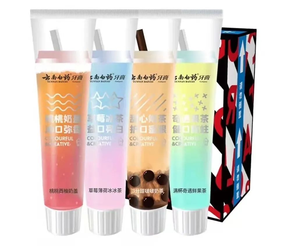 单一需求的产品很多,比如日用品:牙膏、毛巾、洗发水;一次性消耗品:服务、鲜花、食品等。其实这类产品很难和用户进行长期绑定或者引导用户批量购买,一般来说就是牙膏用完了再买,但是否还买你们家的就不知道了。但是如果把这些偏功能性的产品往情感层面去拓展,会有一些意想不到的效果。有一天早晨醒来,我媳妇问我今天是什么心情?看看用哪一管牙膏?说的就是下图云南白药的四种不同口味的牙膏。