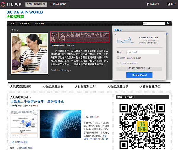 既然抓图抓到了这个网站的页面,我就顺便做一下介绍。这个网站是我和好多个对大数据有特别爱好的朋友一起做的,我们的宗旨是翻译一些觉得有趣的海外的关于大数据的信息,然后完全完整原汁原味的呈现给大家。其中有很多不错的内容,所以,如果大家对大数据感兴趣,又想知道国外的counterparts是怎么看待大数据的,不妨支持这个网站,谢谢!链接是:世界大数据观察。如果有兴趣加入我们的,也请跟联系。