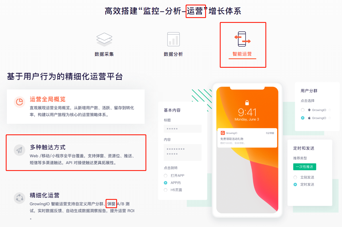 又如我前面提到的GrowingIO,也做类似于MA的工具,起名叫“智能运营”,本质上,它强调的:选人、精细化触达、多触点,不就是MA嘛。