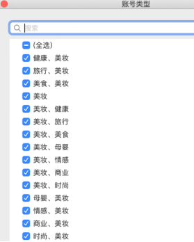以美妆行业为例,我们可以看到美妆达人下还有很多细分类型,比如时尚美妆、健康美妆、旅行美妆等等,可以更有针对性地进行选择和分析。