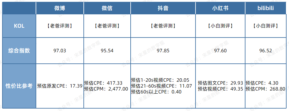 我们以一个测评科普类博主的实例来看,如果想要在不同平台上挑选最合适的测评类博主,该如何衡量?