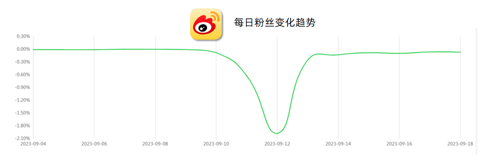 从增长率可以看出,9月12日出现了明显下降,也就是事件发生的第二天。这一点也可以从他的掉粉数上观察得出。