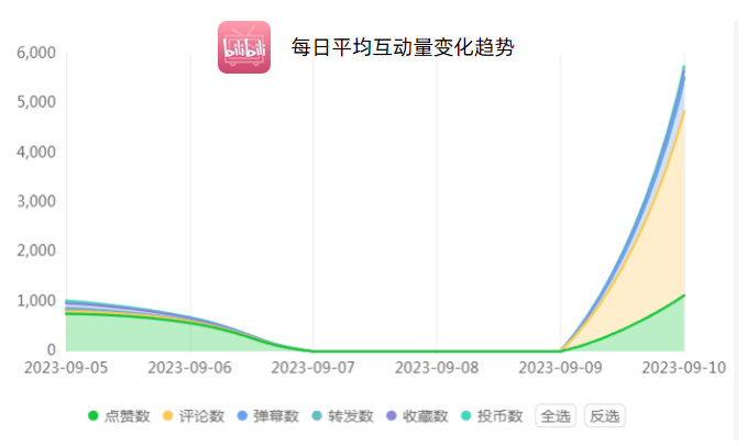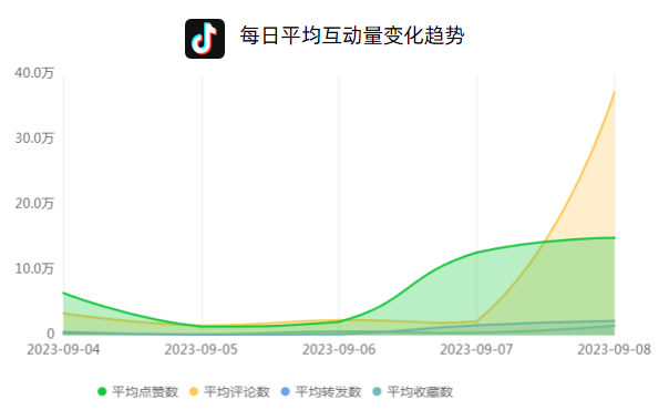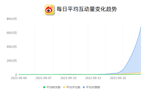 从抖音、微信和Bilibili三个平台的趋势变化可以看出,自9月11日开始的平均互动量均有大幅度提升。其中,抖音平台的粉丝数量在9月11日之后有小幅下降,但在9月16日之后又有一波涨幅。