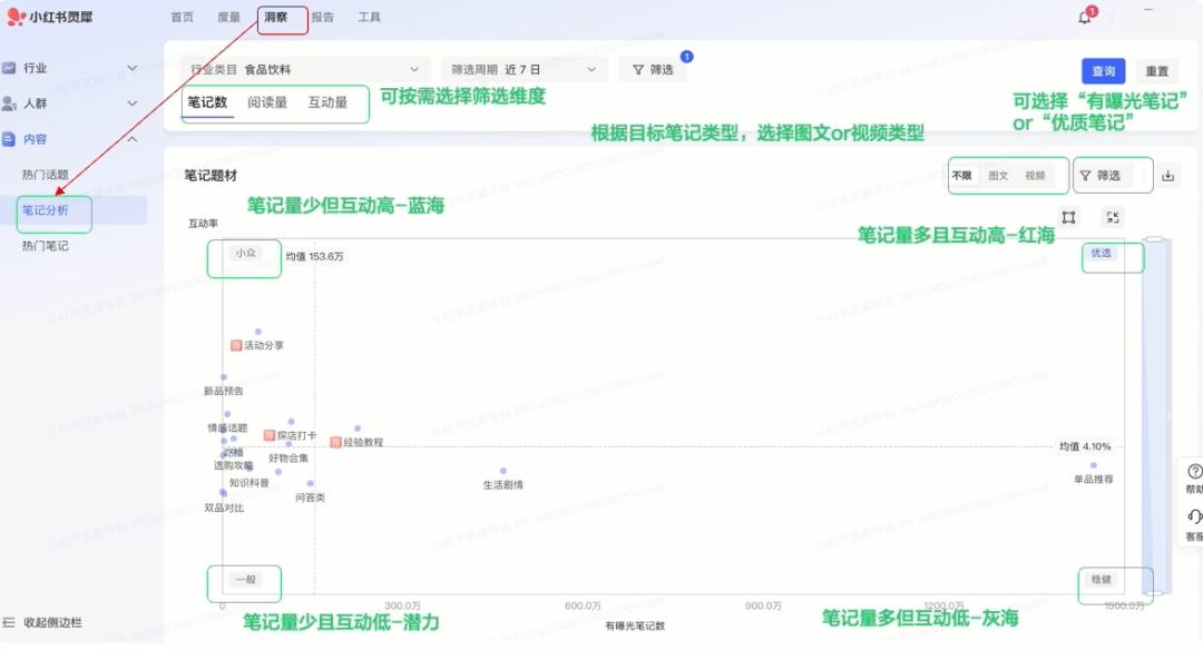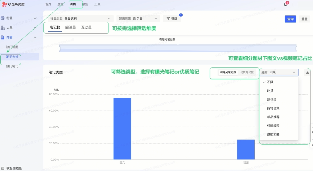 最后是确认笔记的类型,看看行业大盘下图文视频笔记的配比。