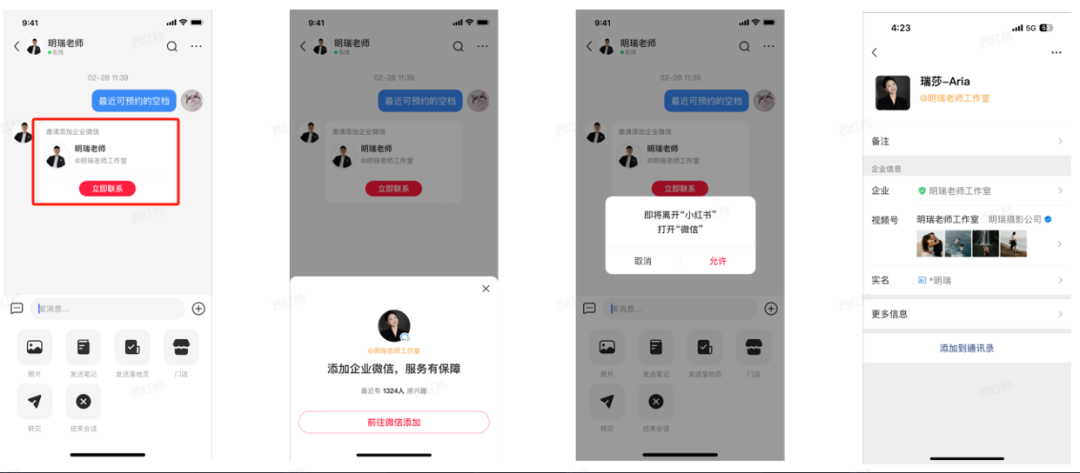 开通后,可以在与用户私信中直接发送企微的名片,用户点击名片后可以直接跳转到添加好友界面,大大缩短了转化路径。