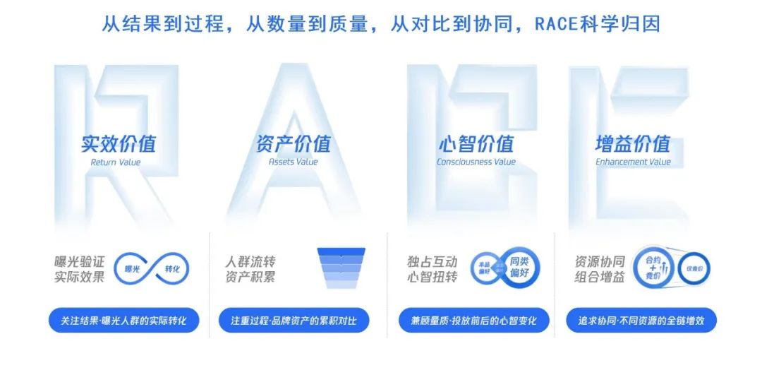 这些数据目前只能靠调研或者大型媒体平台提供。过去的衡量方式主要是问卷调研或者舆情调研,但往往会受到样本量级或主观偏差影响,且比较难追踪当下复杂且加速动态演变的消费者心智。大型媒体平台提供的工具,比如RACE模型,可以提供相关数据,其背后的原理,仍然是基于人群的行为。