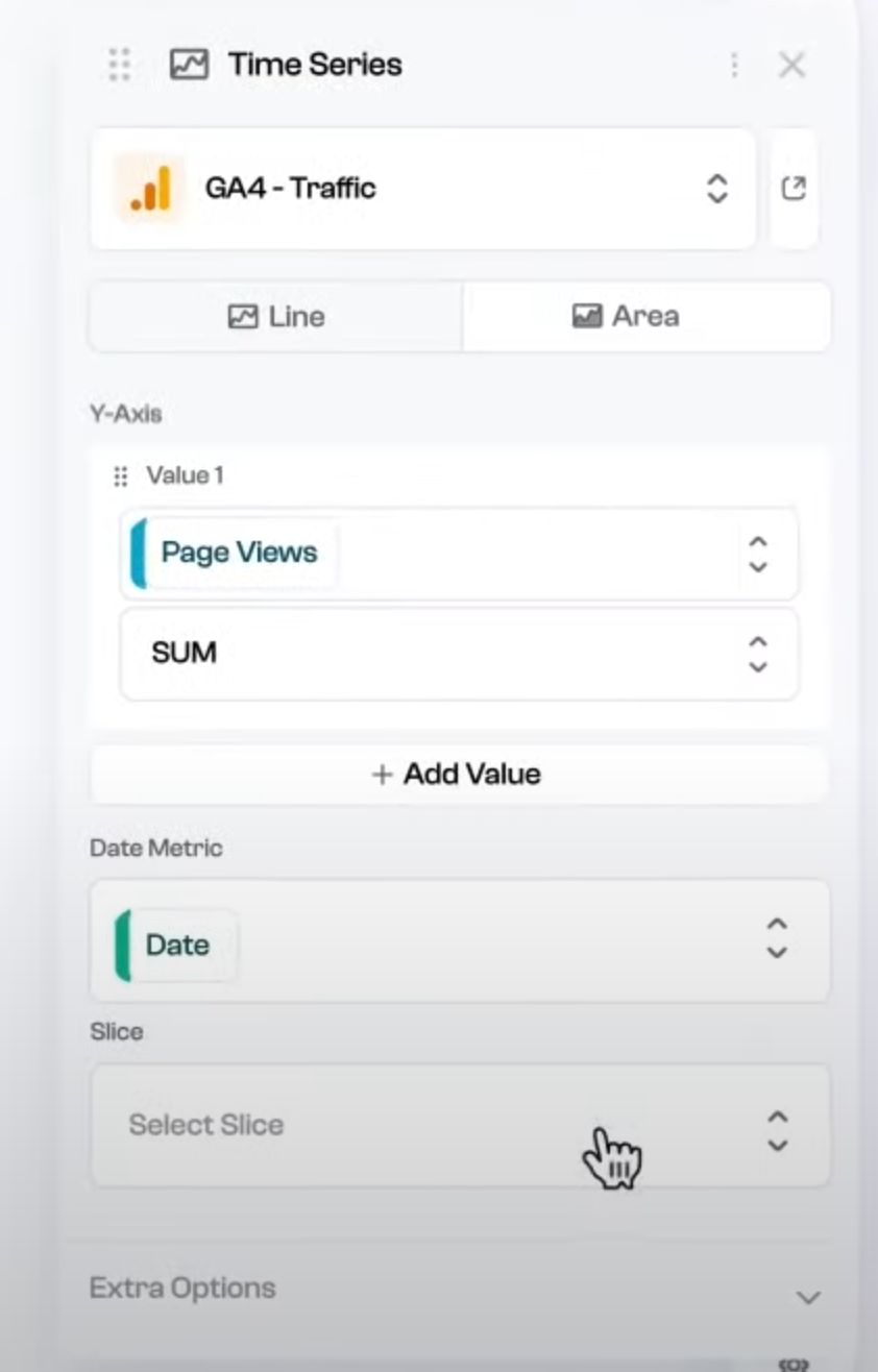 一旦你把所有你需要的数据都连接在Polymer这里,你可以自己选择变量,然后自己拼接成各类图表。比如,把A平台(Google Ads)中的各广告的费用、展示和点击数据,与B平台(GA)中的这些广告的流量数据,以及C平台(电商平台)中这些流量源的销售数据连接在一起,变成一张广告投放绩效的数据表,就很轻松。未来,这张表会完全自动更新,你不需要再做任何手动操作。
