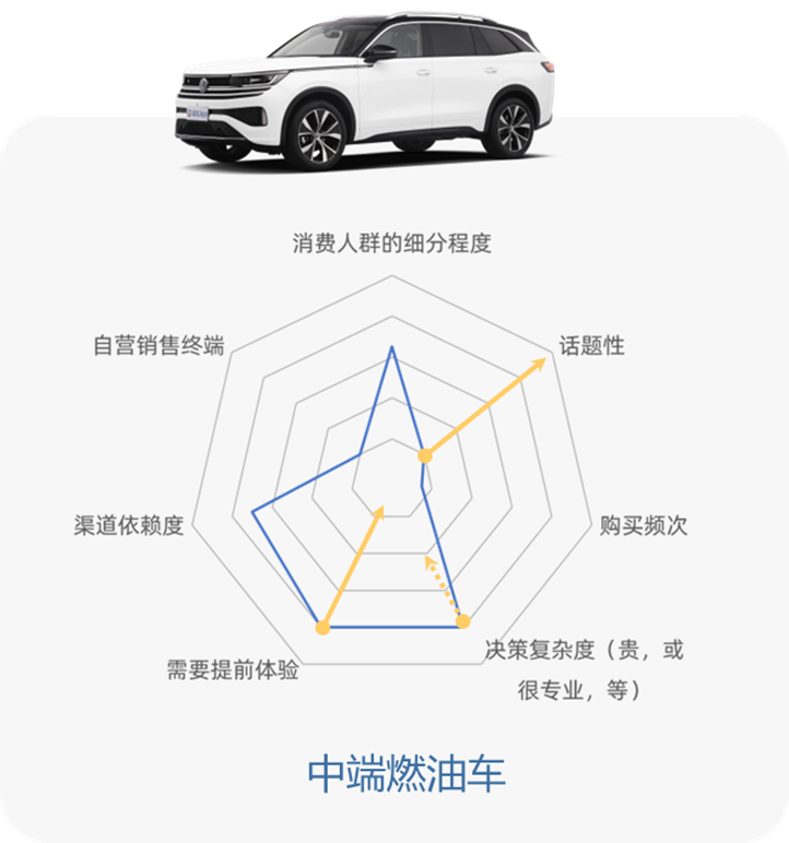 汽车,尤其是燃油车,产品中包含的“阻碍营销”的因素样样占齐:人群细分性强,购买决策复杂度高,并且还需要实际体验……