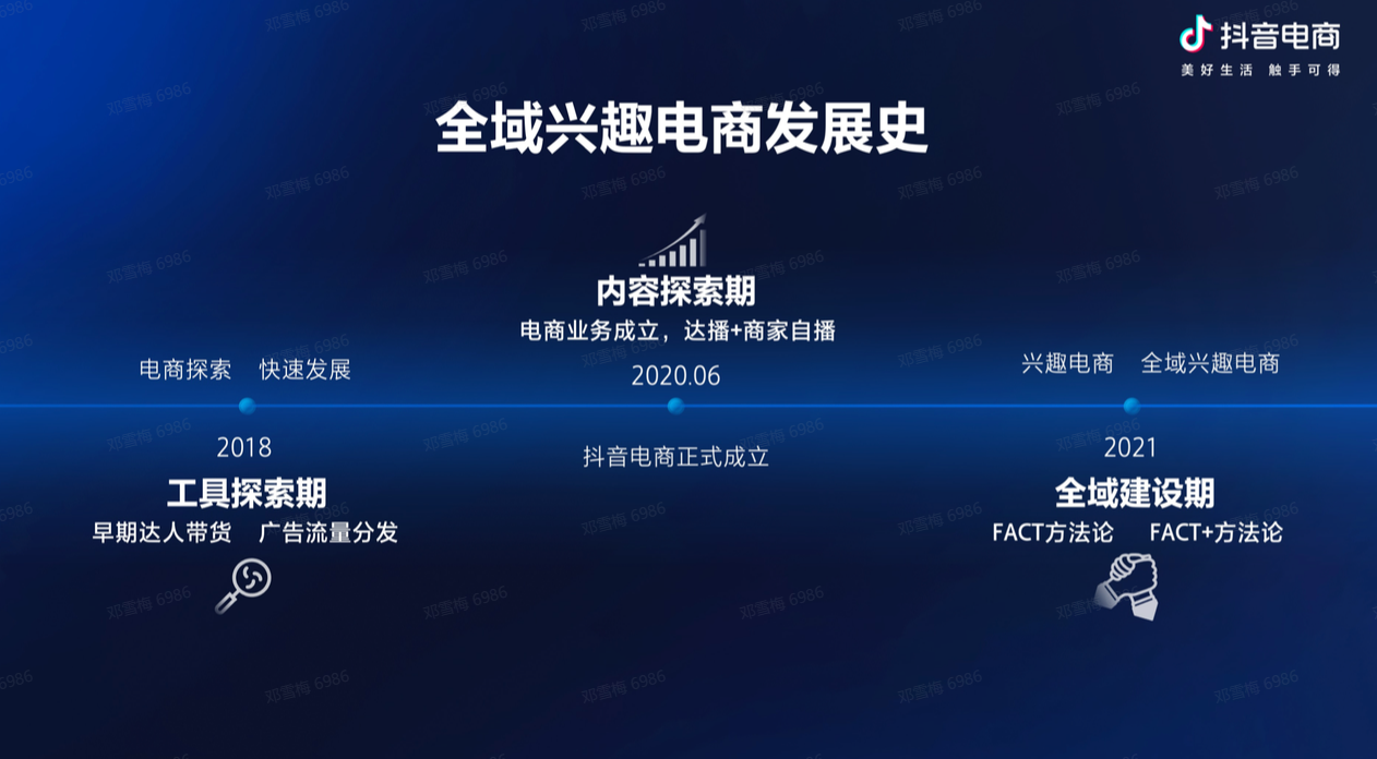 随后,2020年6月起,抖音电商进入第二阶段的内容探索期,通过合作头部达人/明星直播+商家自播开启带货模式。这个阶段迅速迎来爆发式增长,2020年全年电商GMV超5000亿元,是2019年的3倍。