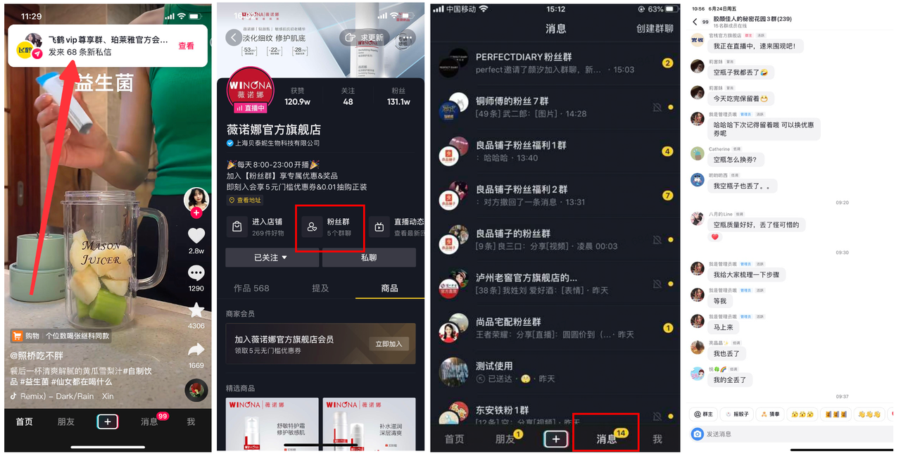 抖音商家群聊入口及群内互动,图源: 抖音官方