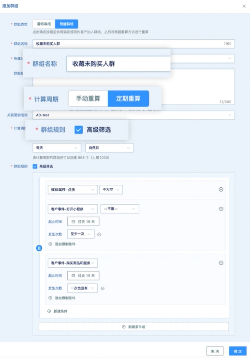 DM Hub中典型的功能如营销画布、用户分群和标签、消费者跨触点的行为追踪等都在这个产品模块中保留或进一步升级。