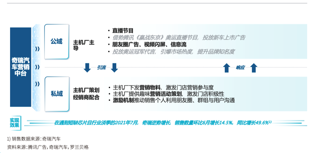 关于如何做好流量、内容、工具、数据这四个重点,并真正做到主机厂、经销商、终端销售、消费者这些营销链路核心角色的串联,奇瑞给出了一个非常好的实践范本。