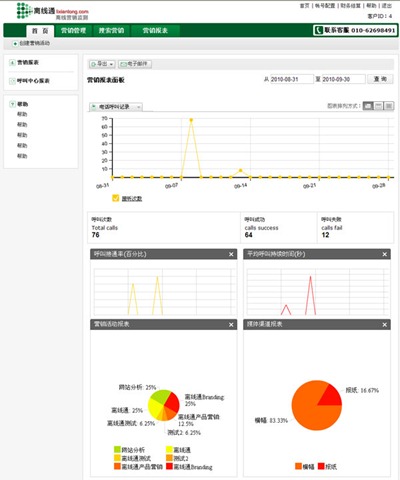 在这个思路基础之上,这个产品主要实现了两个功能:其一是能够全面监测到客户电话打入的数量,并由此带来的leads和purchase;其二,则是监测电话的来源,并据此评估营销活动的效率(ROI)和效果(转化,conversion)。因此可以定位它为一个线上线下联动的网络营销监测工具。