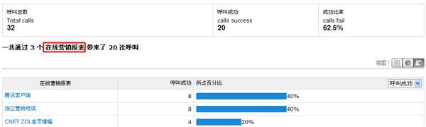 呼叫来源报告则是更有意义的报告,它显示了电话都是从哪些渠道而来的。我认为,这是这个工具的亮点,似乎更适合放在离线通的dashboard中直接显示出来。