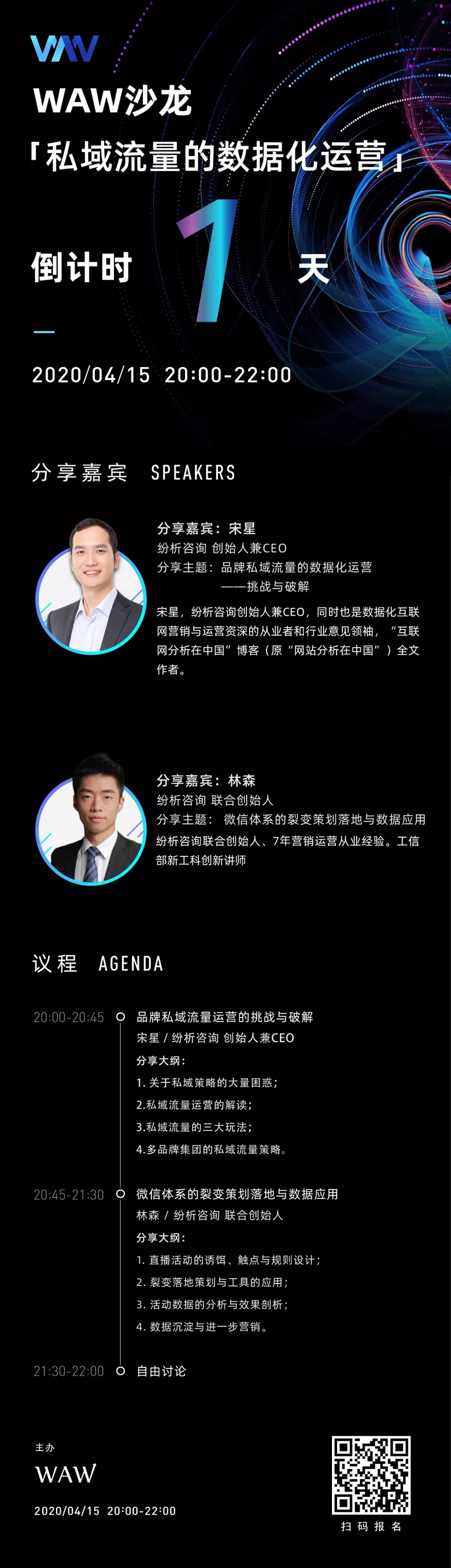 还是先一个通知。明天晚上WAW沙龙,十二年沙龙,第一次全程直播举办!到时线上聊!