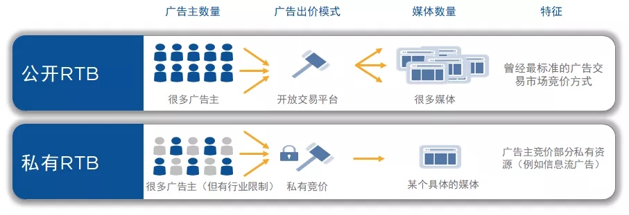 这些广告仍然还是因人而异的广告,也仍然还是需要竞价——它们是典型的通过自动化管理的广告(程序化广告),与RTB的技术属性完全相同。但不再是开放的,而是从公开转向“私有”,不再参和到公共的广告交易市场中。