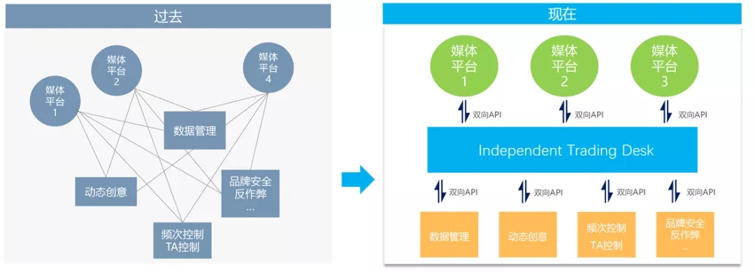 它们跟曾经的DSP看上去类似——DSP接入公共的流量交易市场,而ITD则与私有化的流量媒体通过API相连。