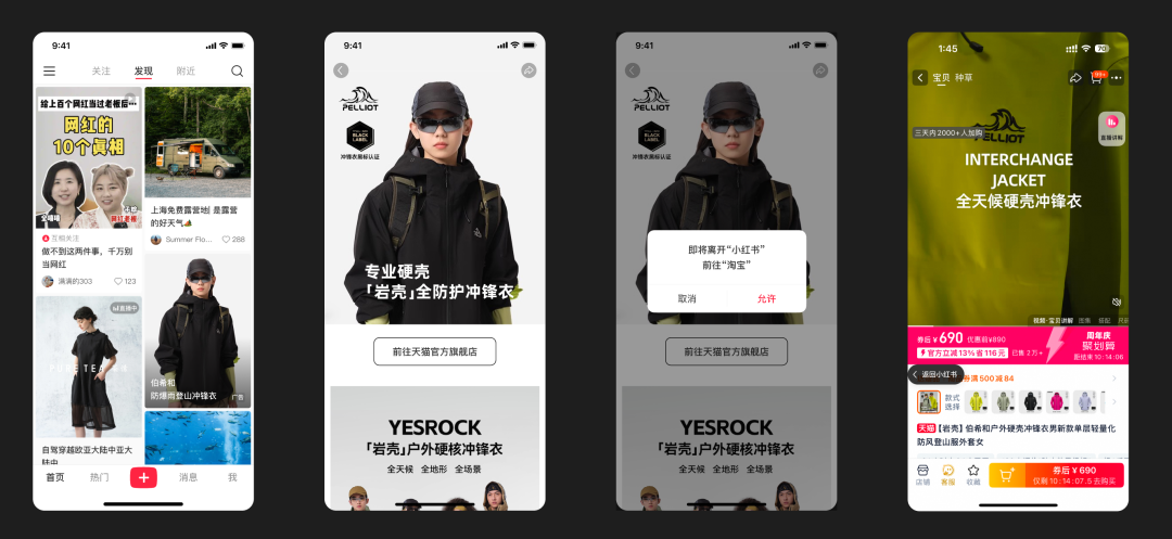 红猫计划最让大家兴奋的点是,用户可在笔记详情页直接跳转至淘宝,完成浏览、加购或购买行为。简化了原来:小红书种草→淘宝搜索→淘宝购买的链路。