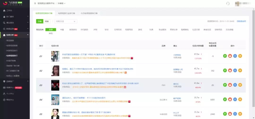 飞瓜数据的电商分析模板,可以通过各个维度查看最热门的商品。