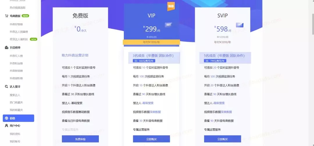 在功能上,比上述两款工具,抖大大的功能比较单薄。在分析维度上,没有那么细致。不过抖大大有个明显优势。它的免费版涵盖的功能较多,可以放心体验一下。