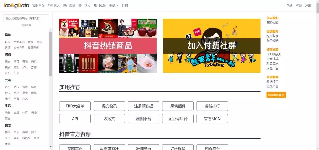 Toobigdata上主要是用来查看抖音的各类榜单数据。比起工具,更像是各综合查询平台,所以整体上的分析功能偏弱。不过,查询功能也是免费的,方便使用。其中,也有个特色榜单“黑马号”可以帮助发现潜力新账号。还有可以免费查看前100名热卖商品,可以作为参考。