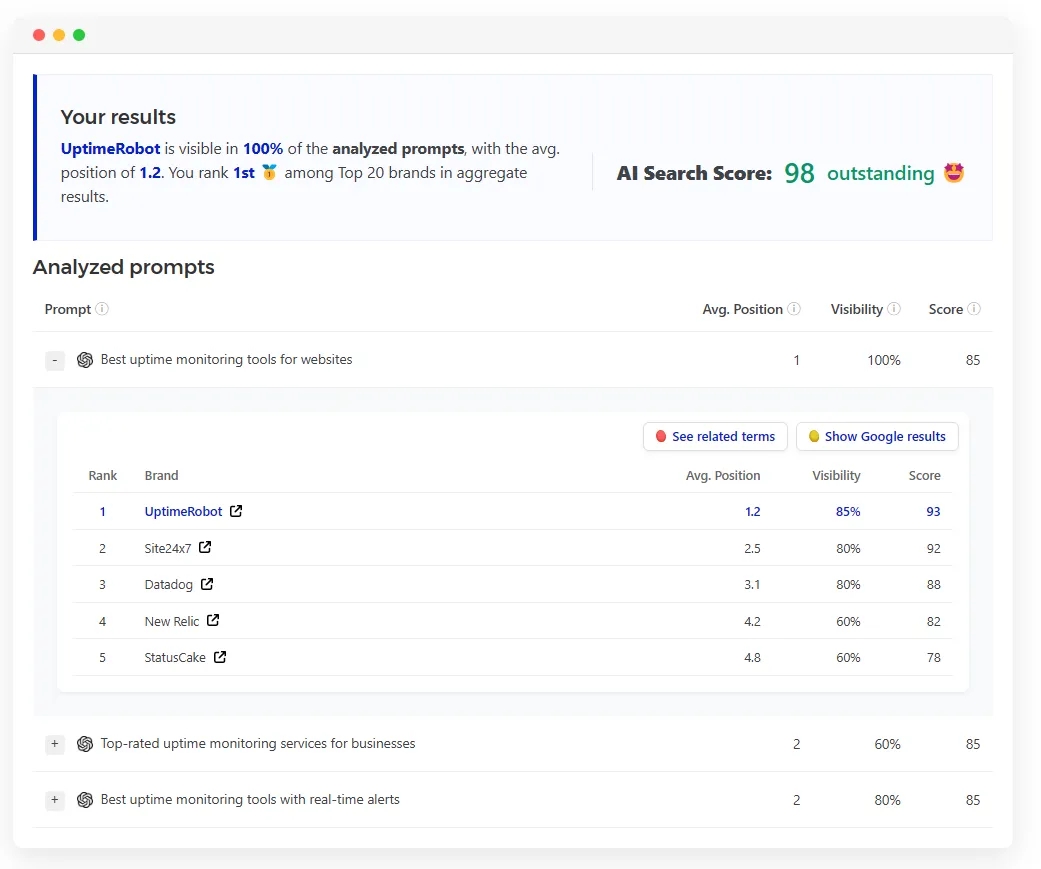 - Otterly.AI、AI Monitor、AI Visibility、Promptwatch、Am I on AI?:这些工具提供用于监控和优化 AI 搜索存在的各种功能。