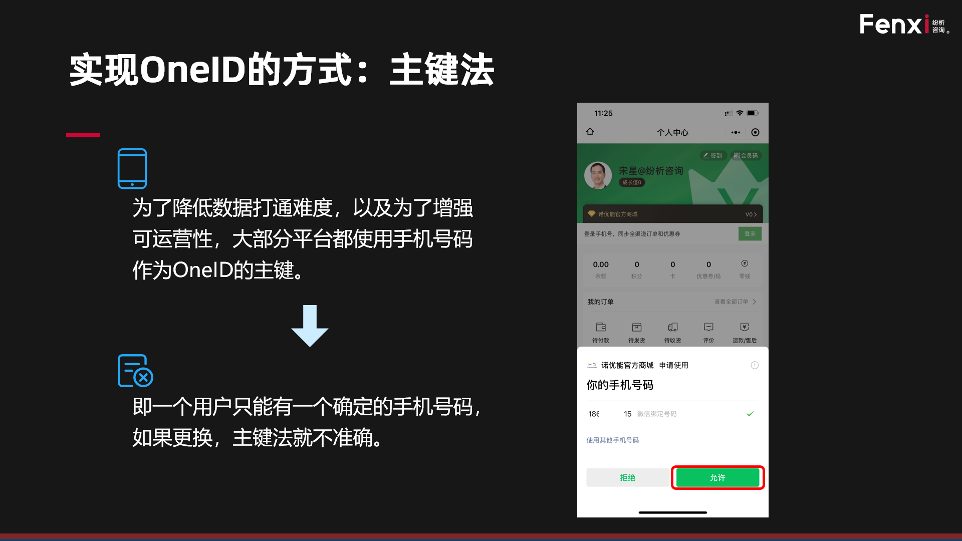 应用三:作为粘合其他ID的粘合剂。例如企业在打通数据生成OneID时,主键法就利用的是手机号,才能实现跨域用户的ID打通。关于OneID更具体的原理,我会在我的线下大课《数据驱动增长——以消费者为核心的新数字营销》中进行详细讲解。