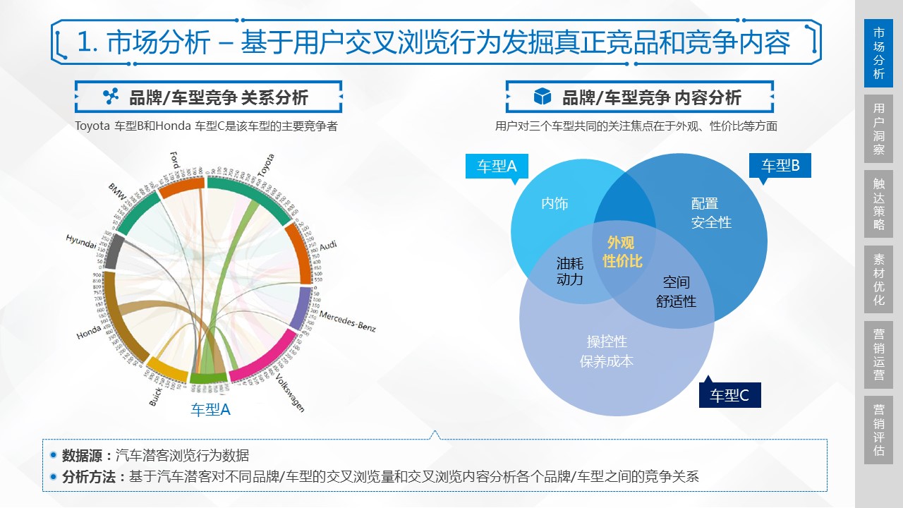 或是挖掘汽车品牌之间的消费者竞争关系,即营销理论中所说的“Mind share(认知份额)”和品牌内涵认知的问题。
