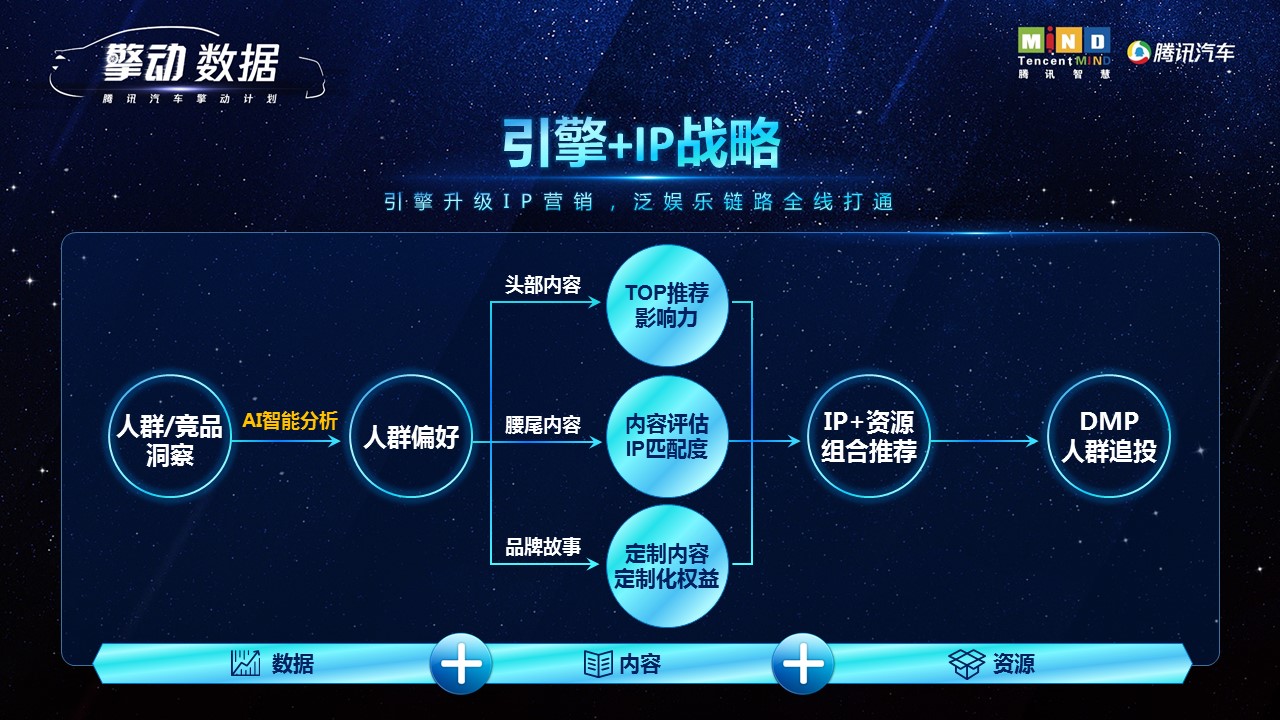 另一方面,除了垂直于汽车领域的资源,泛娱乐内容营销在汽车销售上的重要意义不言而喻。前面已经提到,腾讯覆盖影视、游戏、新闻、动漫、音乐、体育和文学的七大内容产品板块,不仅能满足用户“看听玩动”的兴趣需求,那些广受欢迎的优质IP经过再度开发,还会产生新的内容,影响新的市场,这也成为广告业务发展的基石。